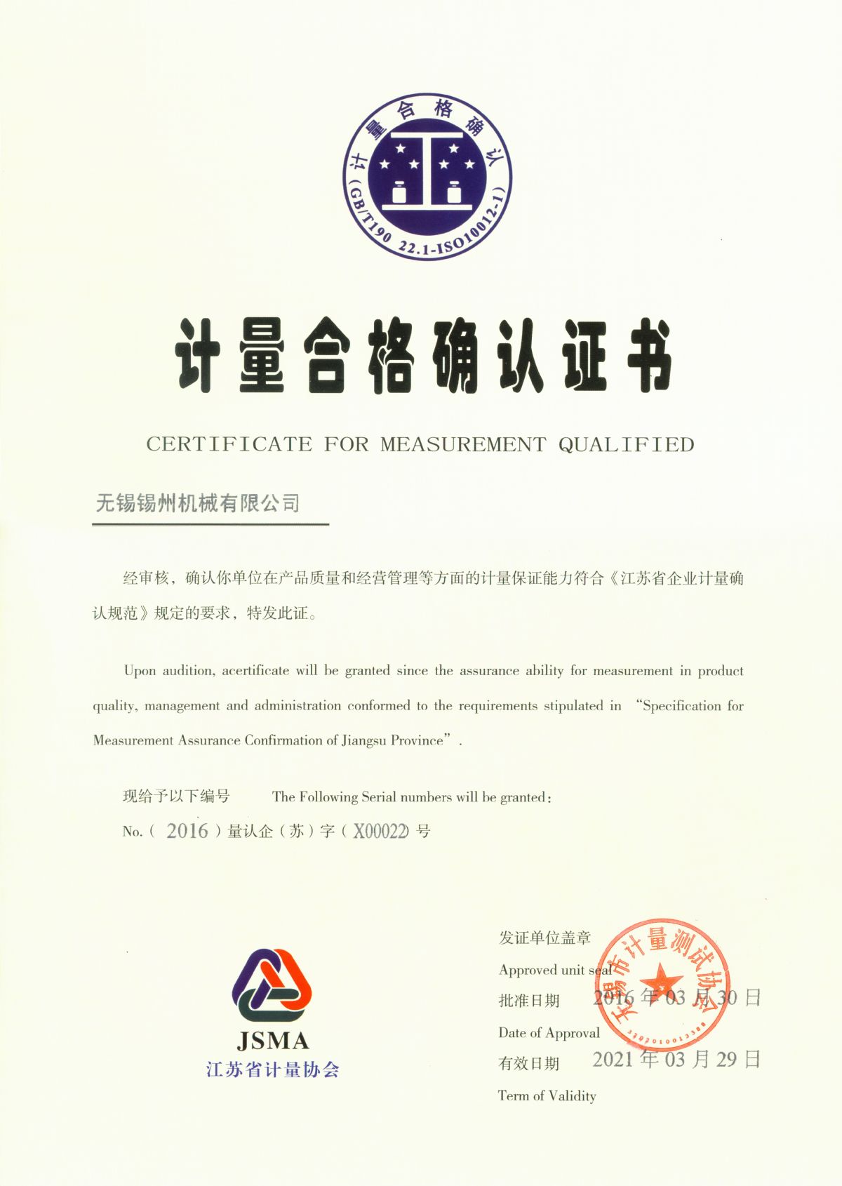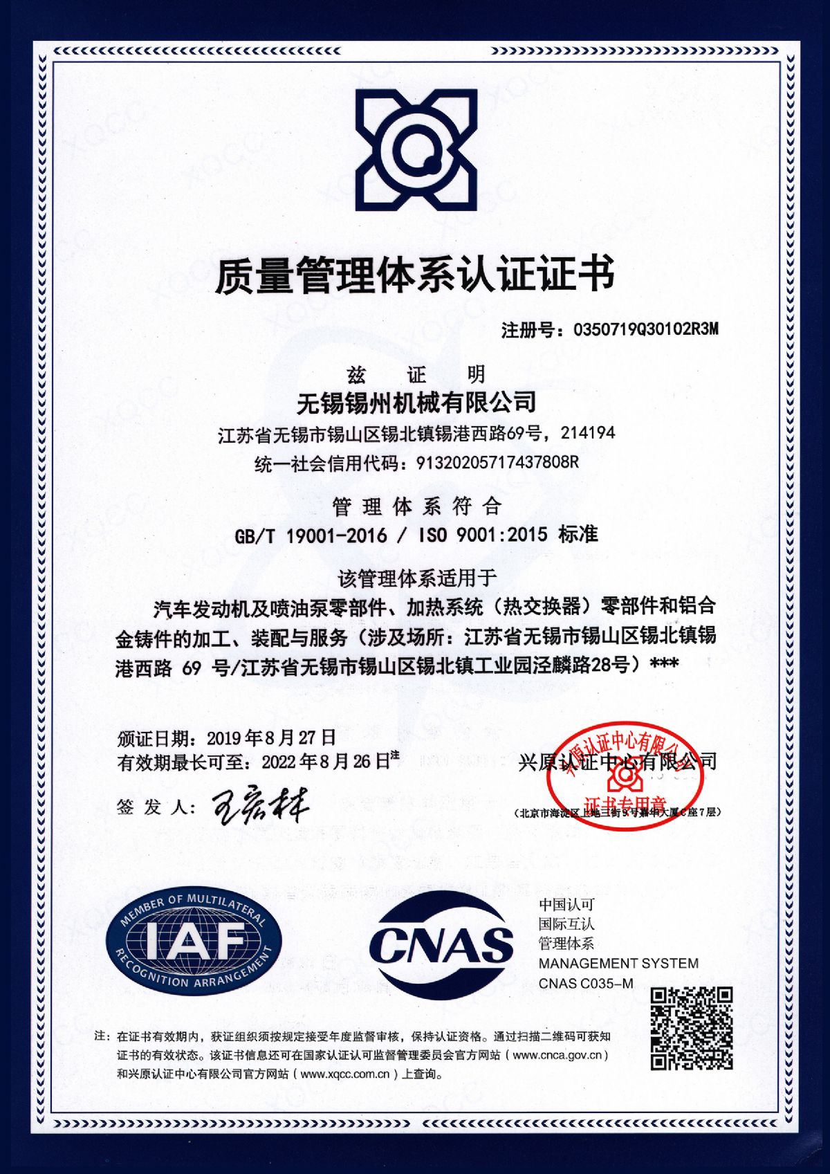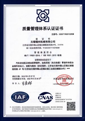 “ 以質(zhì)量求生存,以管理增效益”是錫州機(jī)械堅(jiān)定不渝的經(jīng)營(yíng)理念;“質(zhì)量第一、客戶(hù)至上”是錫州機(jī)械堅(jiān)持不懈的追求;“ 以人為本,鑄就優(yōu)質(zhì)產(chǎn)品, 精益求精,增強(qiáng)顧客滿(mǎn)意”是錫州機(jī)械持之以恒的質(zhì)量方針。 2001年7月公司通過(guò)ISO9001:2000質(zhì)量體系認(rèn)證, 2005年9月通過(guò)ISO/TS16949質(zhì)量體系認(rèn)證。公司于2007年7月通過(guò)產(chǎn)品ASME認(rèn)證。 通過(guò)開(kāi)展以產(chǎn)品質(zhì)量為中心的企業(yè)管理,公司以先進(jìn)的生產(chǎn)檢測(cè)設(shè)備、完善的質(zhì)量保證體系、嚴(yán)密的產(chǎn)品開(kāi)發(fā)體系、嚴(yán)格按照標(biāo)準(zhǔn)開(kāi)展產(chǎn)品生產(chǎn)管理,并開(kāi)展6S現(xiàn)場(chǎng)管理,竭盡全力創(chuàng)造一個(gè)比較清潔、健康、安全的環(huán)境,全方位地滿(mǎn)足國(guó)內(nèi)外客戶(hù)的要求。